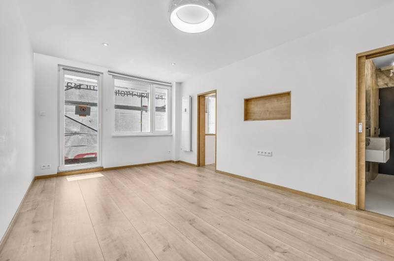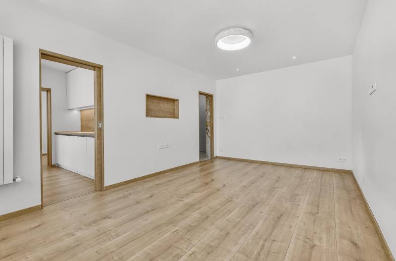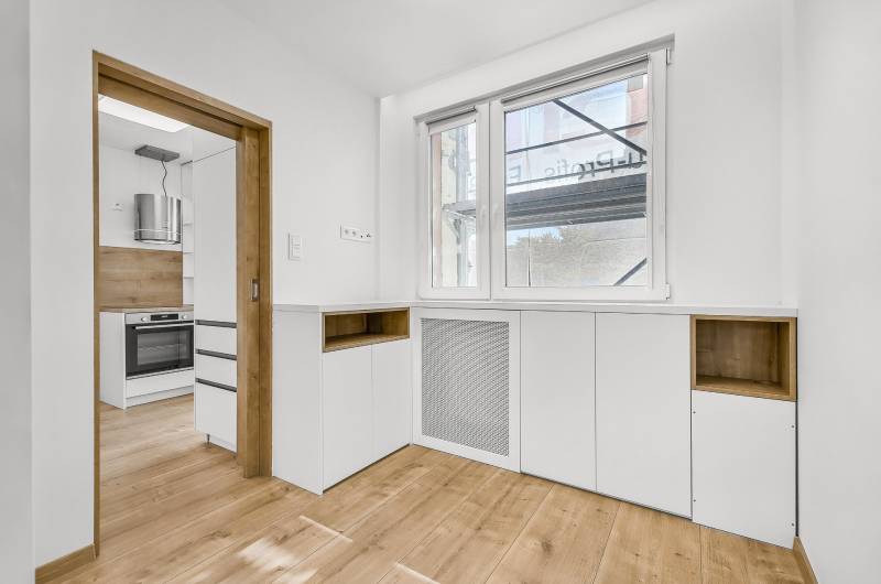 Byt bol 2 roky dozadu kompletne zrekonštruovaný - nové rozvody vody a odpadu, nová kúpeľňa, oddelená toaleta, nové rozvody elektriny, nové laminátové podlahy, znížené stropy a podsvietenie, nové interiérové dvere a tiež kazetové zasúvacie dvere, nová kuchynská linka s kvalitnými elektrospotrebičmi (umývačka 60 - BOSCH, elektrická rúra a indukčná doska, GORENJE chladnička s mrazničkou, digestor Klarstein).