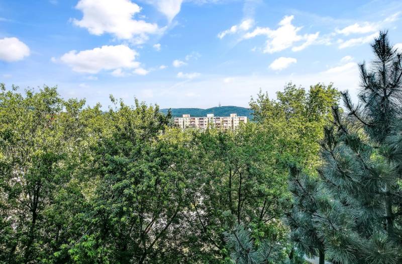 Byt má orientáciu V-Z a krásne výhľady zo spální.